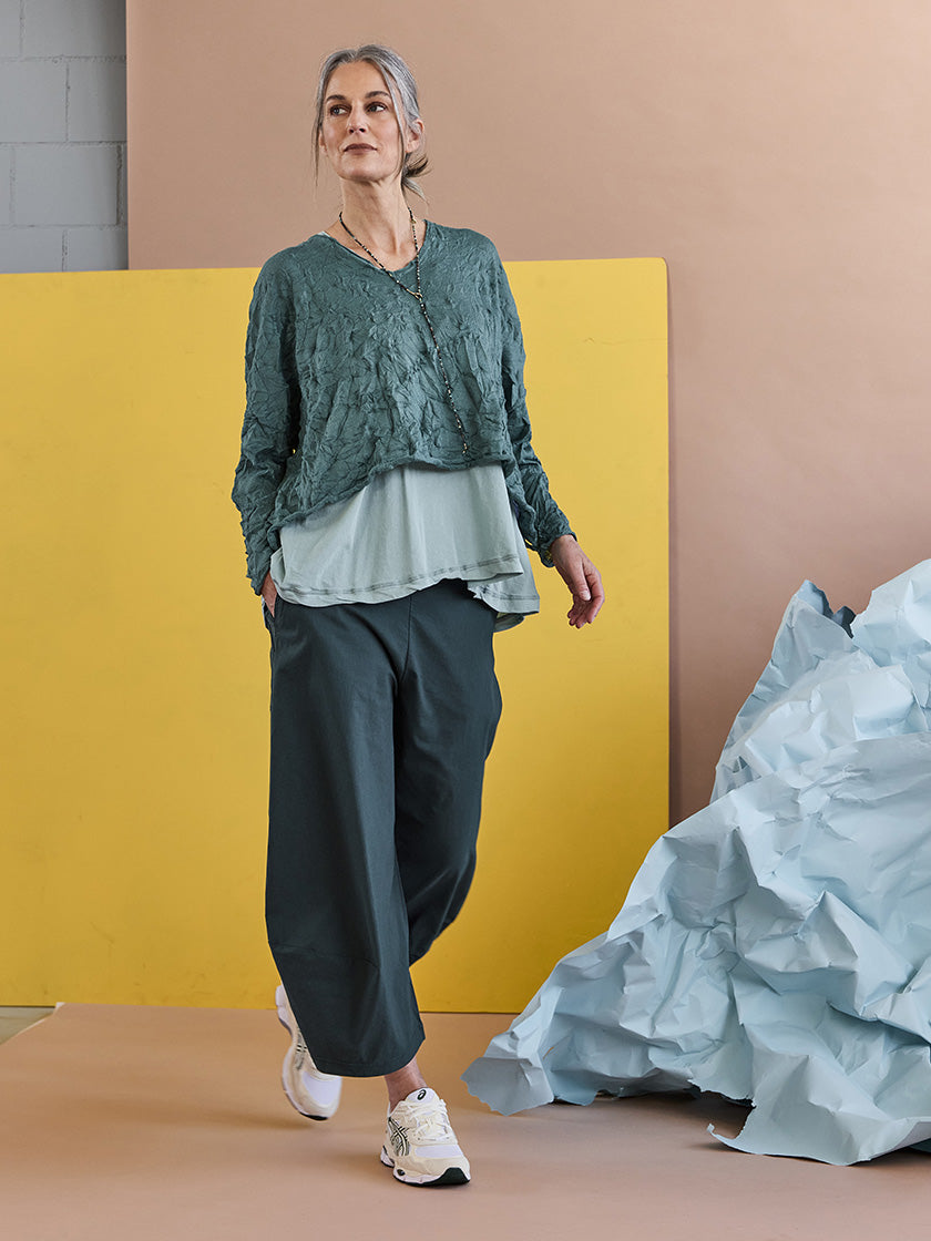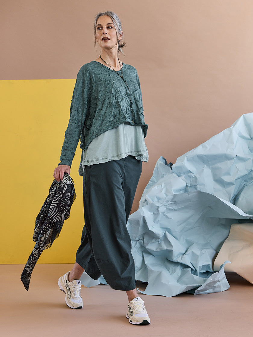 Pantalon classique de RUNDHOLZ BLACK LABEL, avec la coupe caractéristique et distinctive de la marque. Confectionné dans un coton de grande qualité, il t'offre confort et durabilité au quotidien. Sa silhouette ample et ses proportions bien pensées sont typiques de RUNDHOLZ – un choix affirmé pour tous ceux qui apprécient la qualité et la mode personnalisée. Il s'associe parfaitement à ta garde-robe actuelle.
