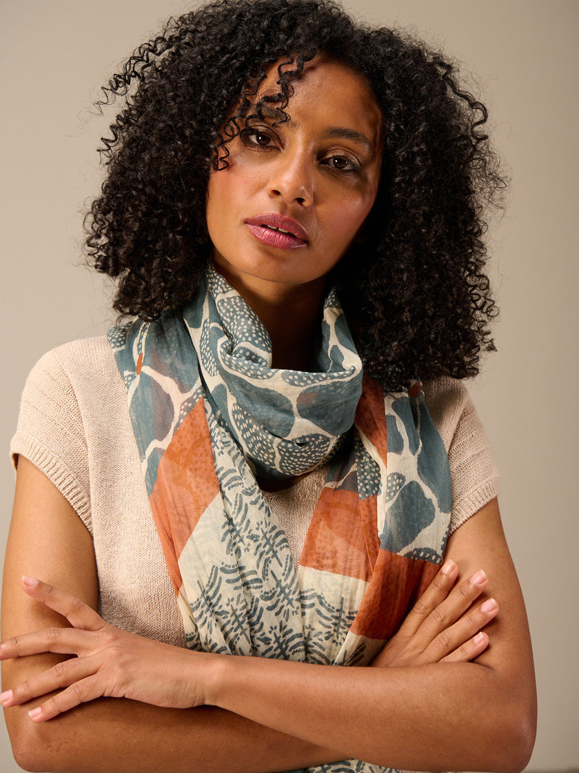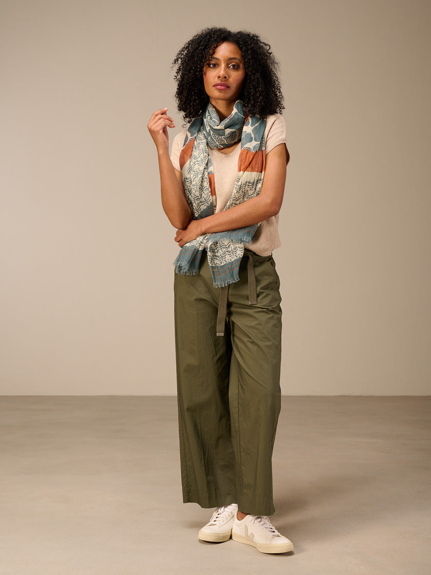 Élégante écharpe 100 % coton biologique de NILE. Cette matière durable offre un confort optimal et une excellente respirabilité au quotidien.