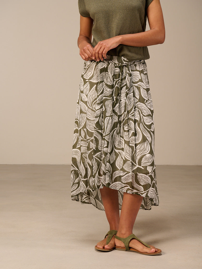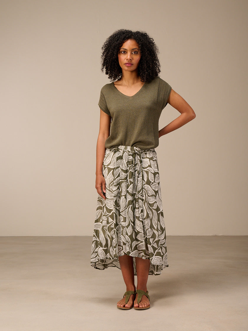 Jupe élégante de NILE viscose fluide. Cette matière haut de gamme épouse agréablement les formes et séduit par son éclat naturel. Grâce à sa coupe décontractée, cette jupe s'avère polyvalente et s'adapte à diverses occasions, du style classique et élégant au look moderne et décontracté. Elle se marie à merveille avec des chemisiers, des pulls ou des vestes pour un Look soigné.