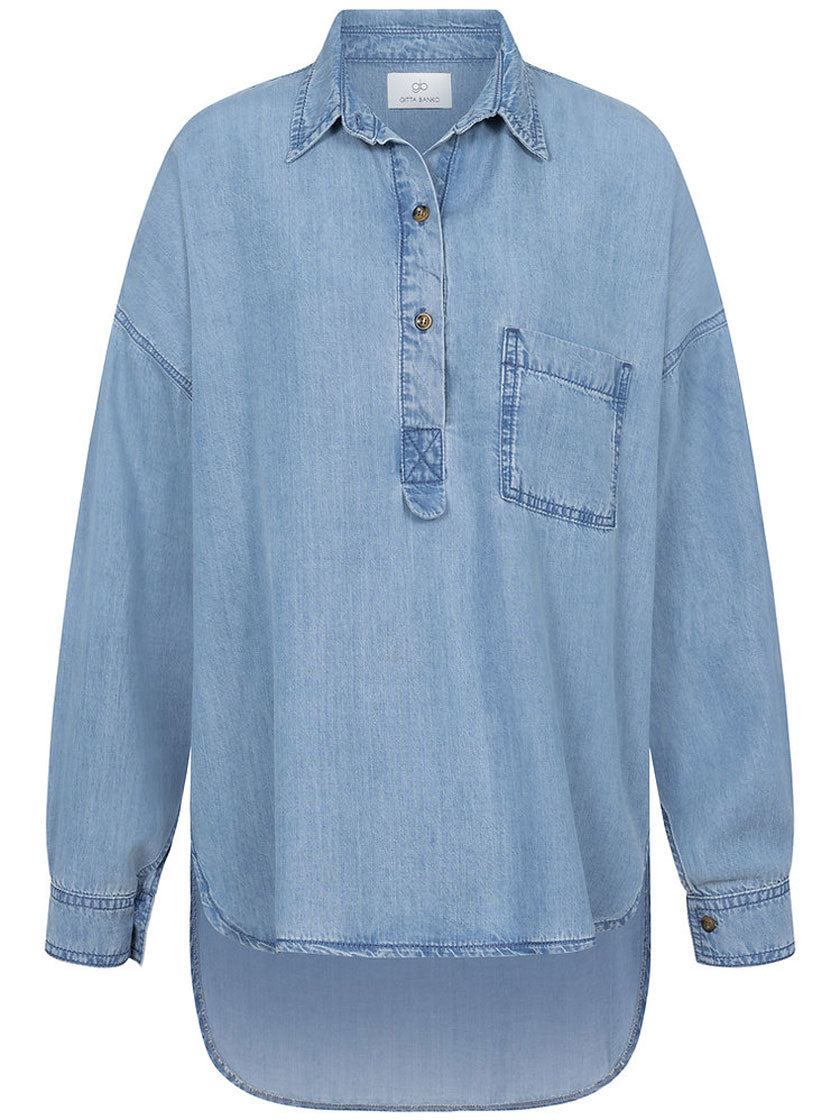 La chemise «Mali» de GITTA BANKO séduit par sa matière Tencel douce. Sa coupe ample allie confort et élégance – parfaite pour tous les jours. Un basique polyvalent qui s'associe facilement.