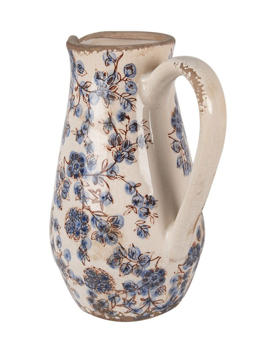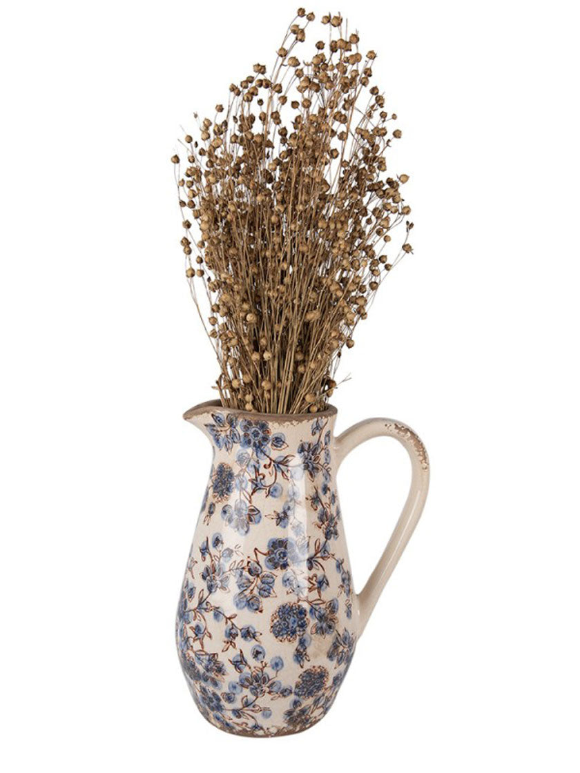 Cette cruche décorative, conçue avec soin, apporte à votre intérieur le charme romantique d'une maison de campagne. Son délicat motif floral, associé à de douces nuances de beige et de bleu, en fait un objet élégant qui attire le regard – à la fois fantaisiste, raffiné et intemporel. Que ce soit sur la table, sur une étagère ou sur le rebord de la fenêtre, cette cruche apporte une touche décorative et crée une atmosphère chaleureuse et accueillante. Il est particulièrement joli associé à des fleurs séchées ou utilisé seul comme élément décoratif.
