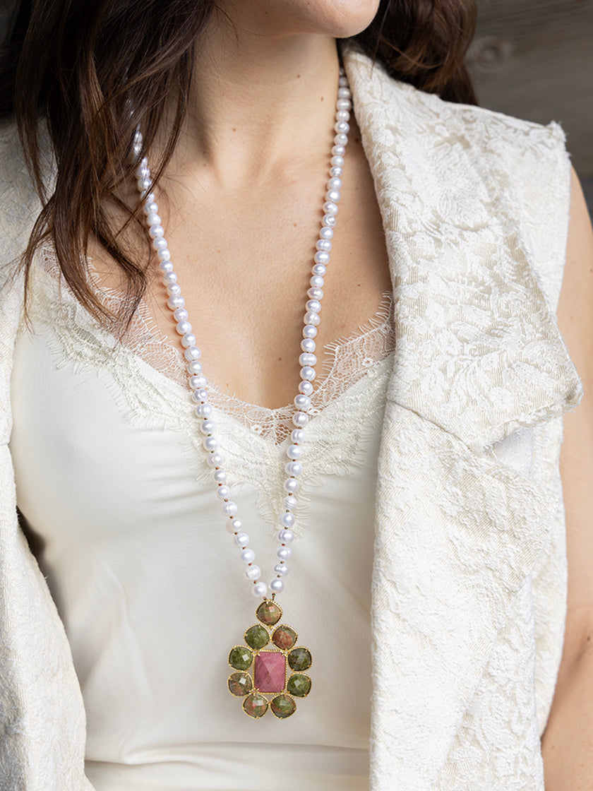 Halskette «Barocco rosa» von CORAZON Lange Halskette mit kunstvollem Anhänger.