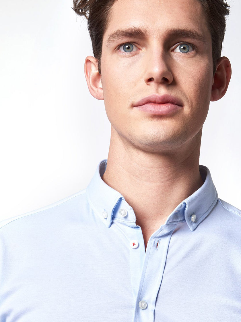 Tu recherches l'alliance parfaite entre élégance et confort ? Avec la chemise à manches courtes bleu clair de DESOTO, tu profites du meilleur des deux mondes dans ta garde-robe : le look soigné d'une chemise de travail associé au confort ultime de ton t-shirt préféré.