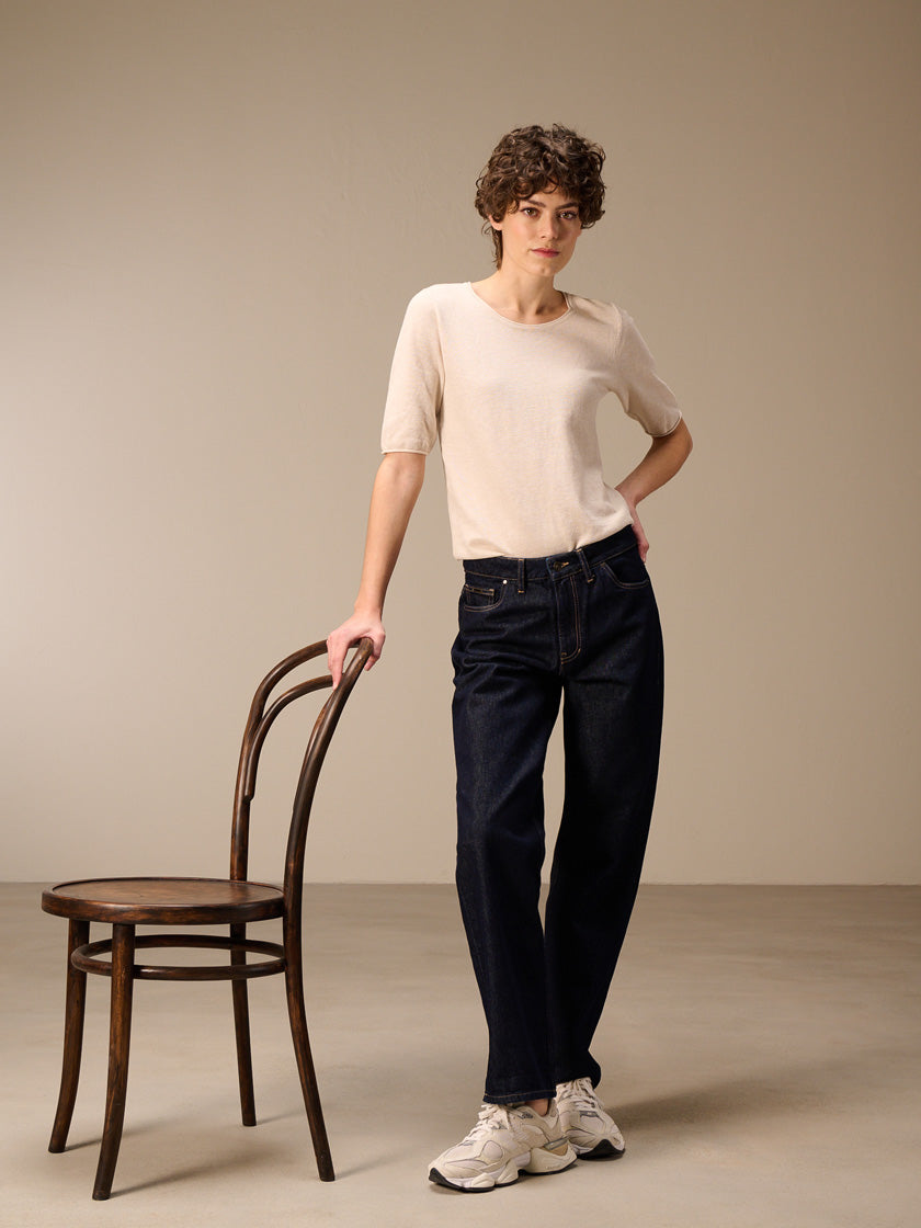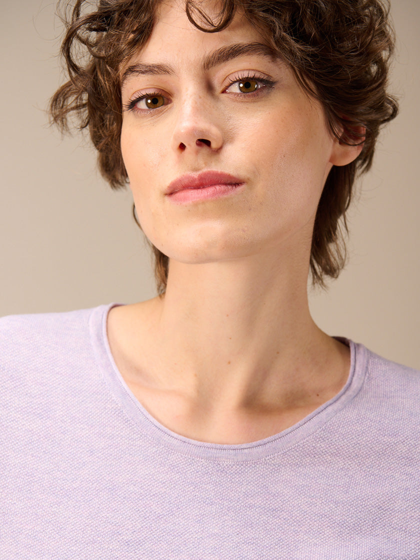 Laver à l'envers. Laver avec des couleurs similaires. Remettre en forme lorsqu'il est humide. Laisser sécher à plat.