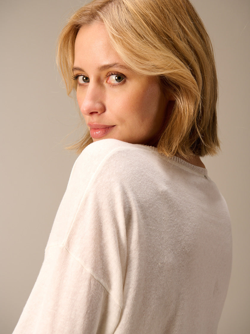 Laver à l'envers. Laver avec des couleurs similaires. Remettre en forme lorsqu'il est humide. Laisser sécher à plat.