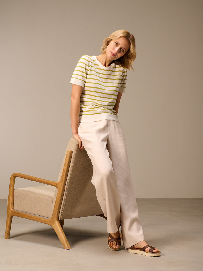 T-shirt rayé classique de NILE un agréable mélange de lin et de coton. Sa matière légère offre un confort optimal pour les journées chaudes et se marie facilement avec d'autres vêtements. Son motif rayé intemporel en fait un basique polyvalent qui s'adapte à tous les styles. Idéal pour les loisirs et le quotidien.
