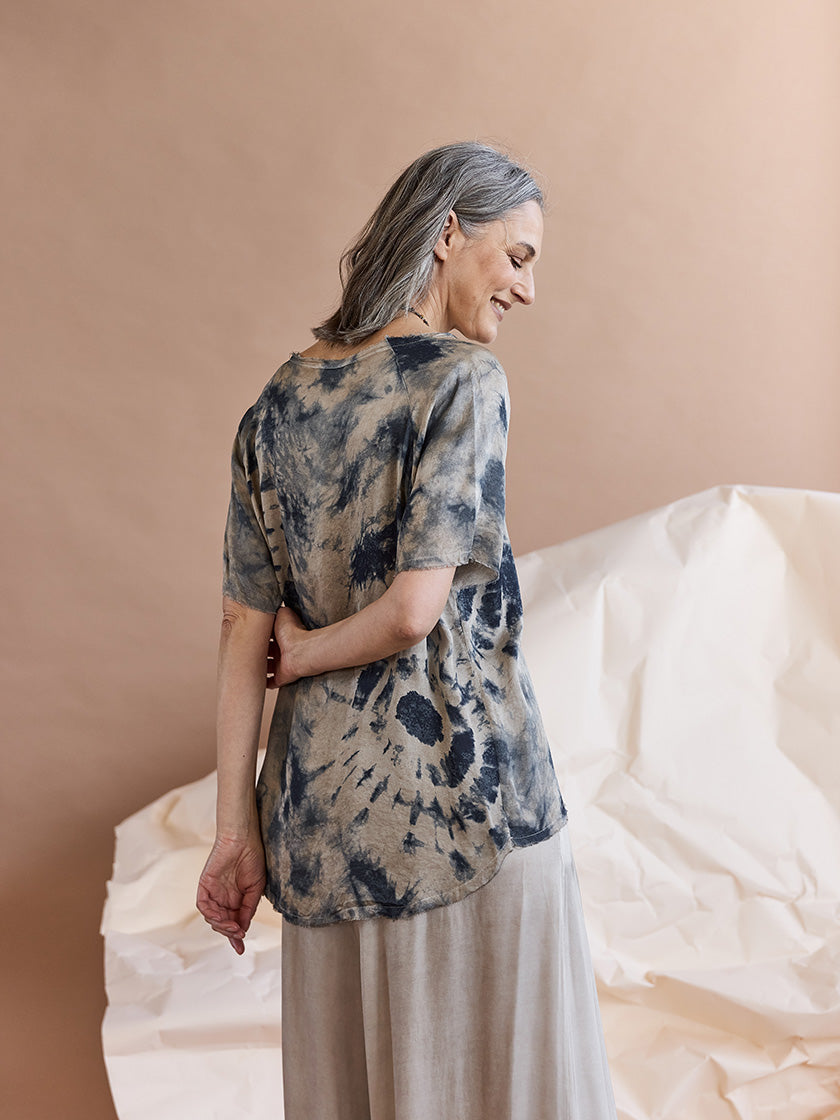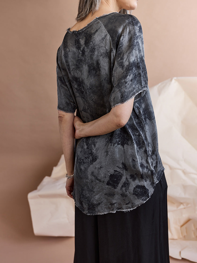 Le t-shirt «Boxy» de SANCTAMUERTE va devenir ton nouveau vêtement préféré. La viscose fluide épouse agréablement les formes de ton corps et t'offre un confort optimal. Son motif élégant en fait le compagnon idéal pour ton quotidien. Sa coupe ample t'offre à la fois liberté de mouvement et style. Associe-la à tes pantalons ou jupes préférés : cette chemise se marie avec tout. Sa finition de haute qualité et sa matière durable en font un investissement qui en vaut la peine.