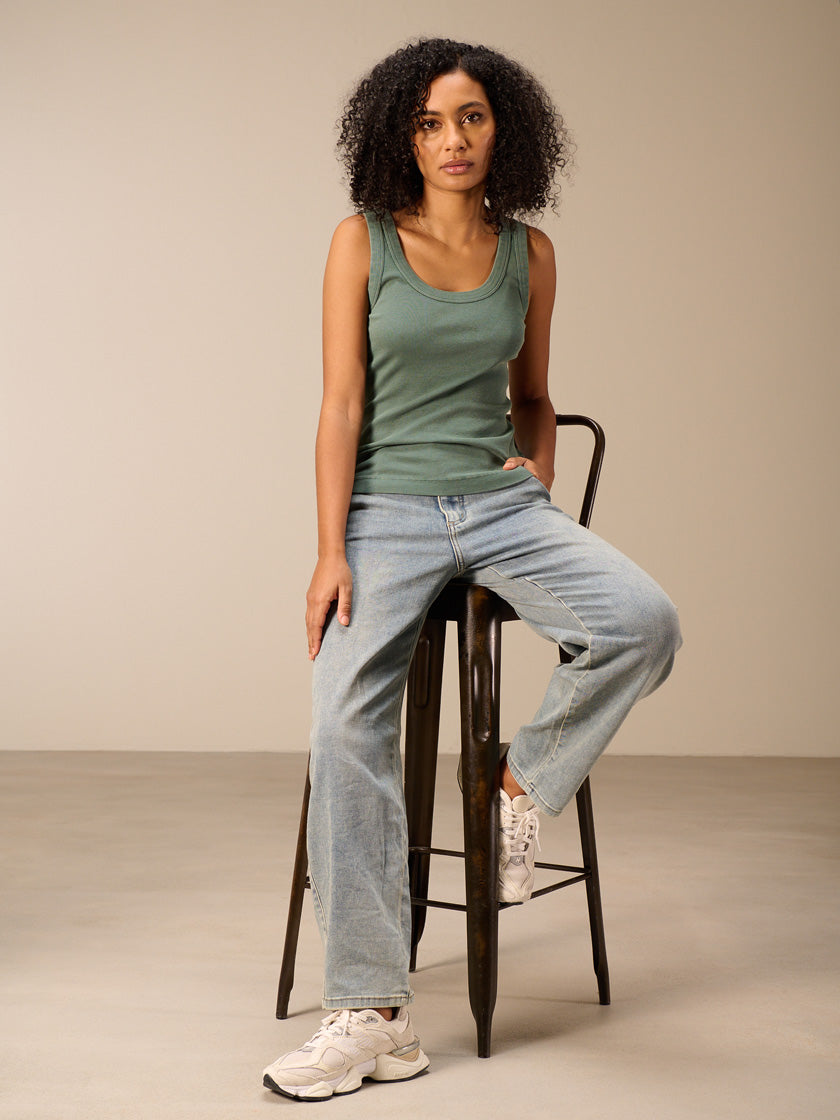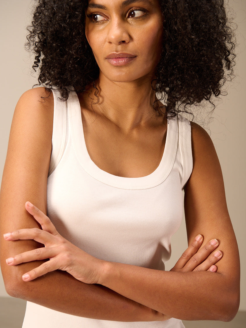Dieses zeitlose Top aus Bio-Baumwolle mit Elastan-Anteil bietet dir maximale Bewegungsfreiheit und Tragekomfort für jeden Tag. Das GOTS-zertifizierte Stück