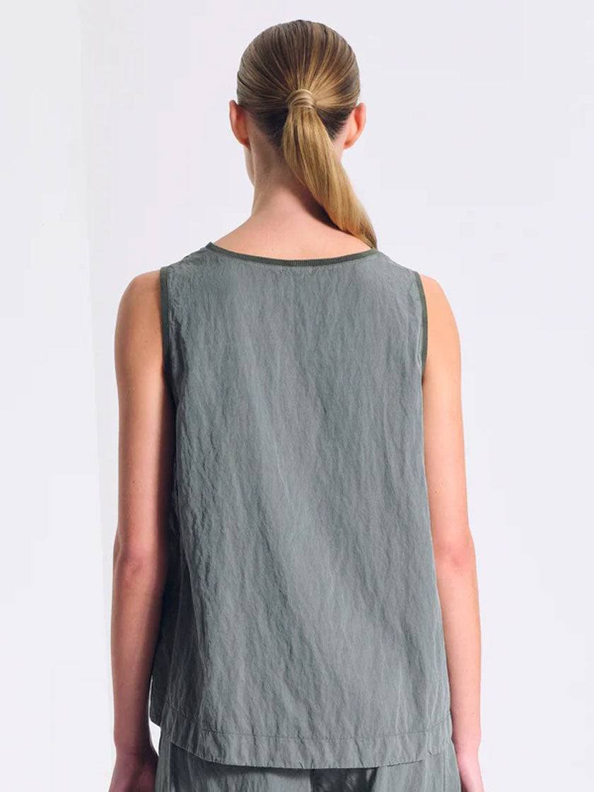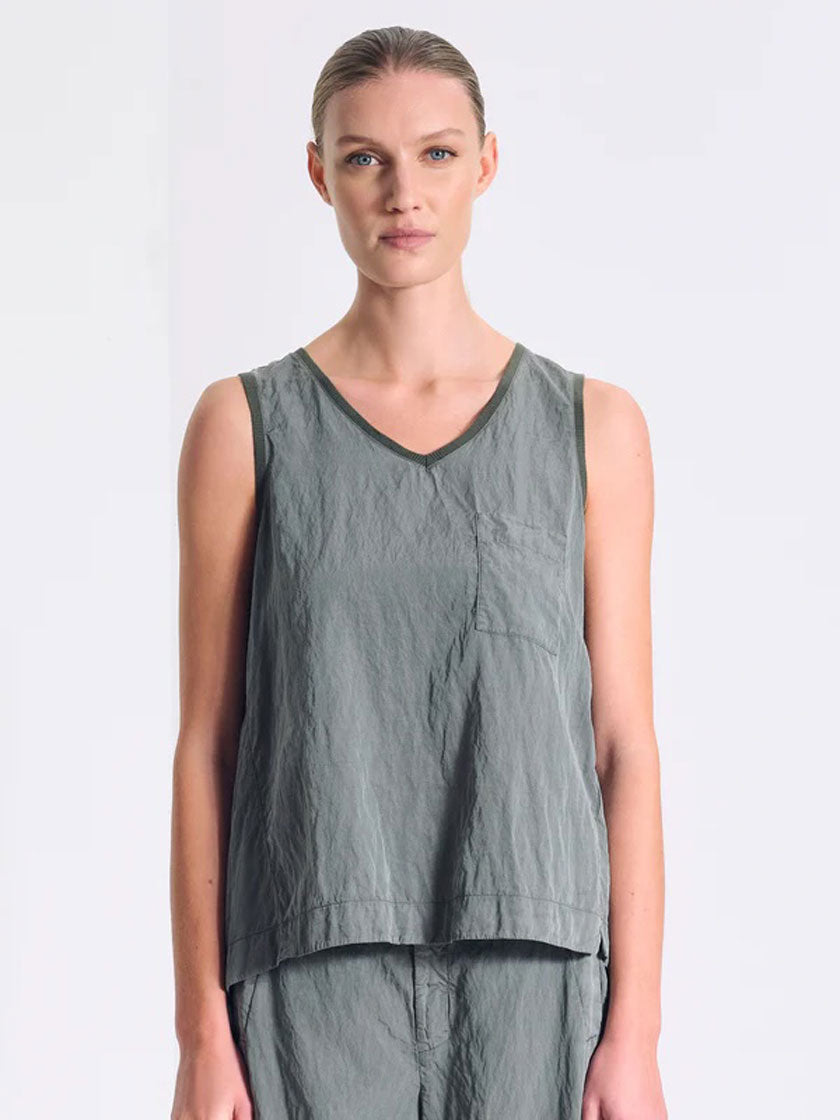 Élégant haut en mélange de soie aux détails raffinés. Des bords-côtes encadrent le col et les emmanchures, tandis que la silhouette ample offre un confort optimal. Une poche pratique à l'avant et la coupe asymétrique – plus courte à l'avant, plus longue à l'arrière – confèrent à ce haut une élégance moderne. Teint en pièce pour des variations de couleurs uniques.