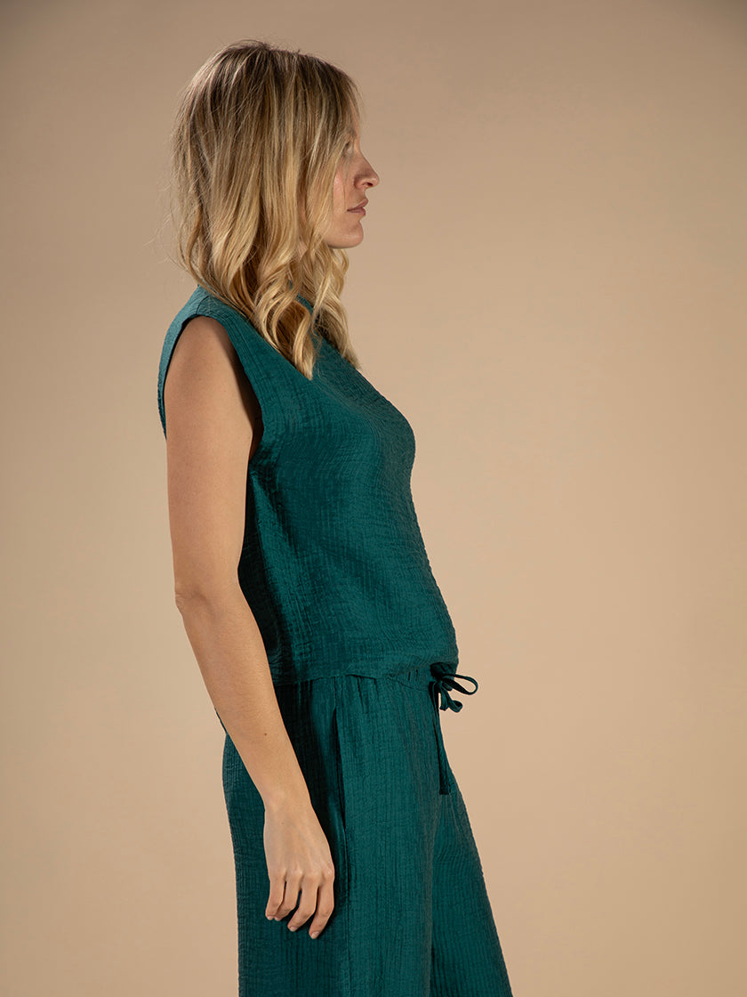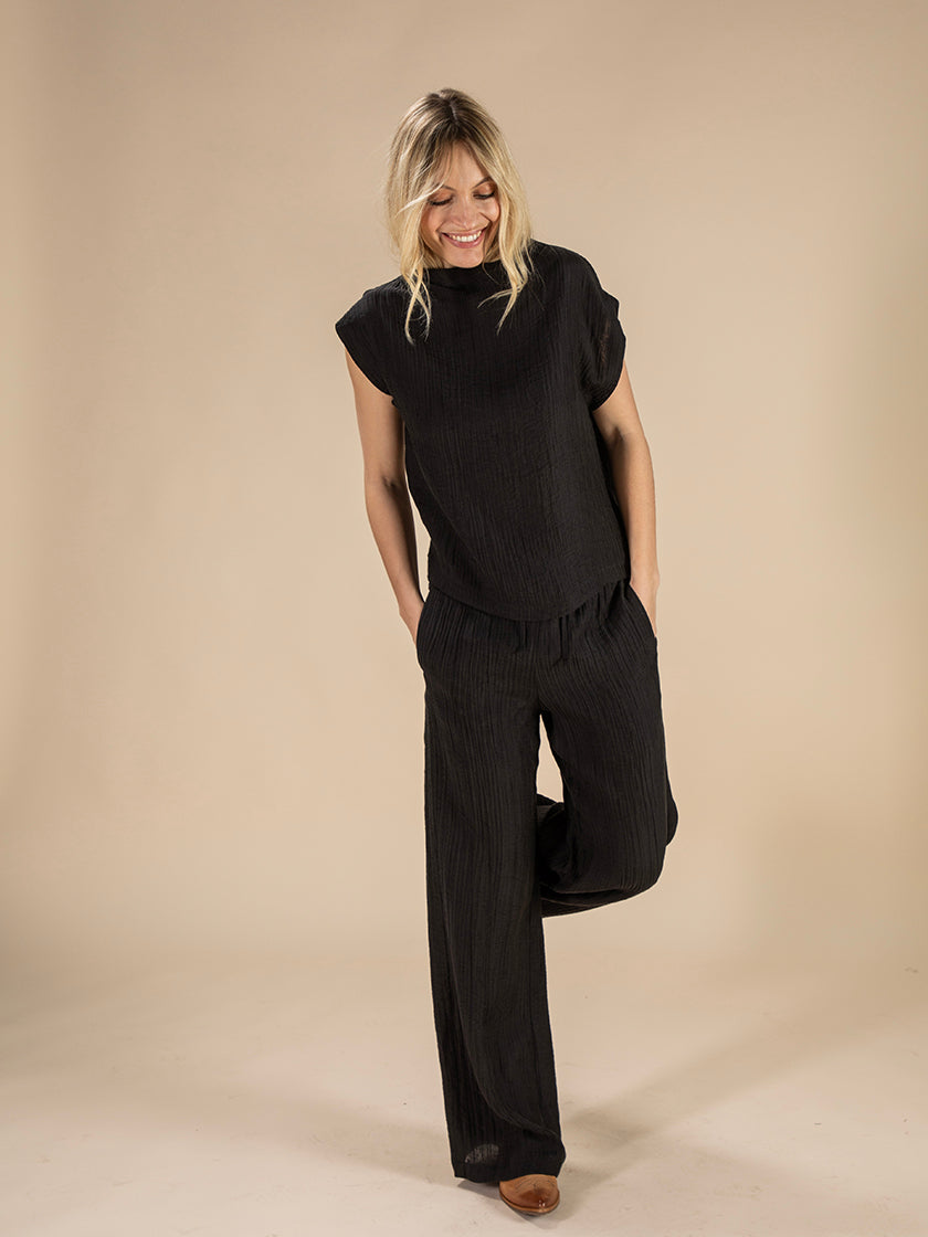 Das Top «Natroni» von SYNDICATE verbindet Bluse und Shirt zu einem vielseitigen Piece. Mit hochwertiger Verarbeitung unterstützt es deinen Stil – ob layered oder solo getragen. Dein flexibler Begleiter für jeden Tag.