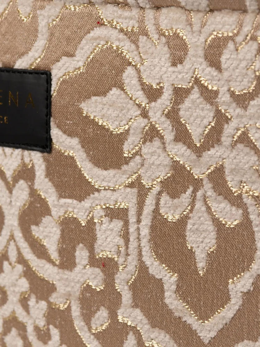 Vous aimez l'élégance intemporelle et les espaces de rangement pratiques ? Le sac « Theros Large » associe un coton beige à des broderies dorées formant un motif ornemental caractéristique, des franges beiges et une bandoulière amovible ornée du logo Sorena. Chaque sac est fabriqué dans une entreprise familiale à Thessalonique.